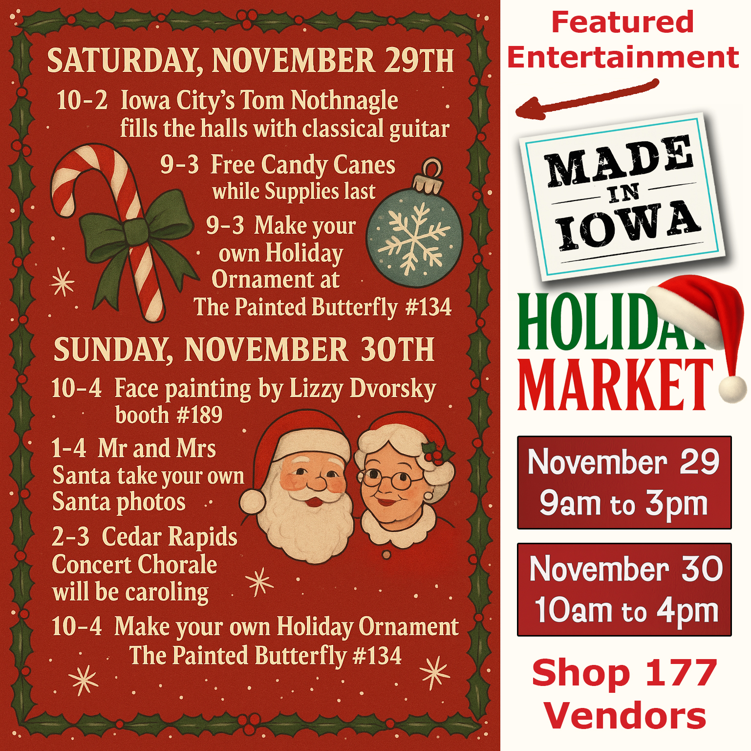 This special two day event takes place Thanksgiving weekend, on Small Business Saturday and Artists Sunday, the busiest shopping weekend of the year. Shop with 177 vendors from across Iowa (list below).
